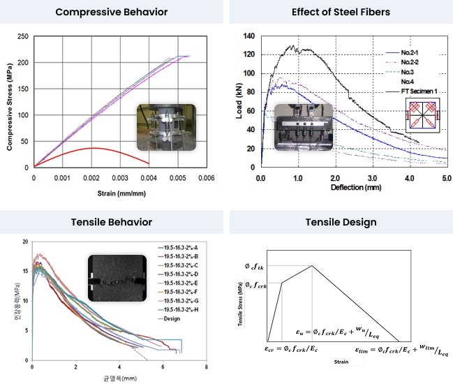 - 초고강도(압축 80~180MPa, 인장 9~15MPa, 휨인장 23~53MPa)
